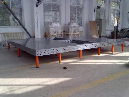 三維柔性焊接平臺材質(zhì):鑄造件(HT300),進行整體退火熱處理消除內(nèi)應(yīng)力后放置三到六個月自然時效處理。